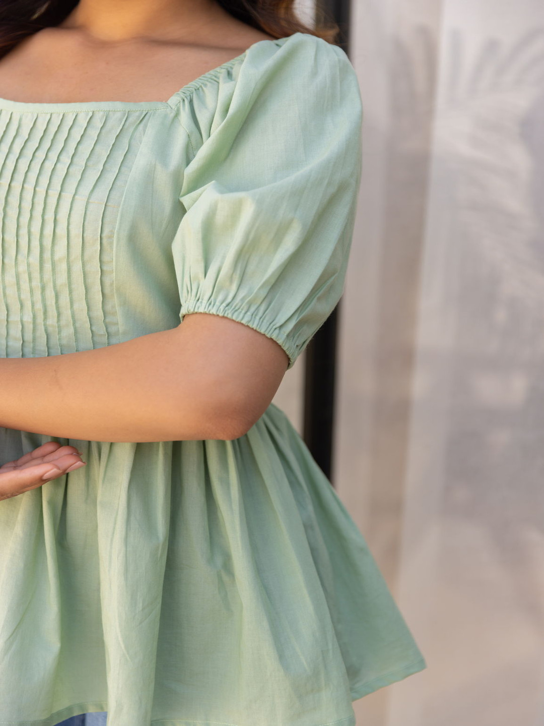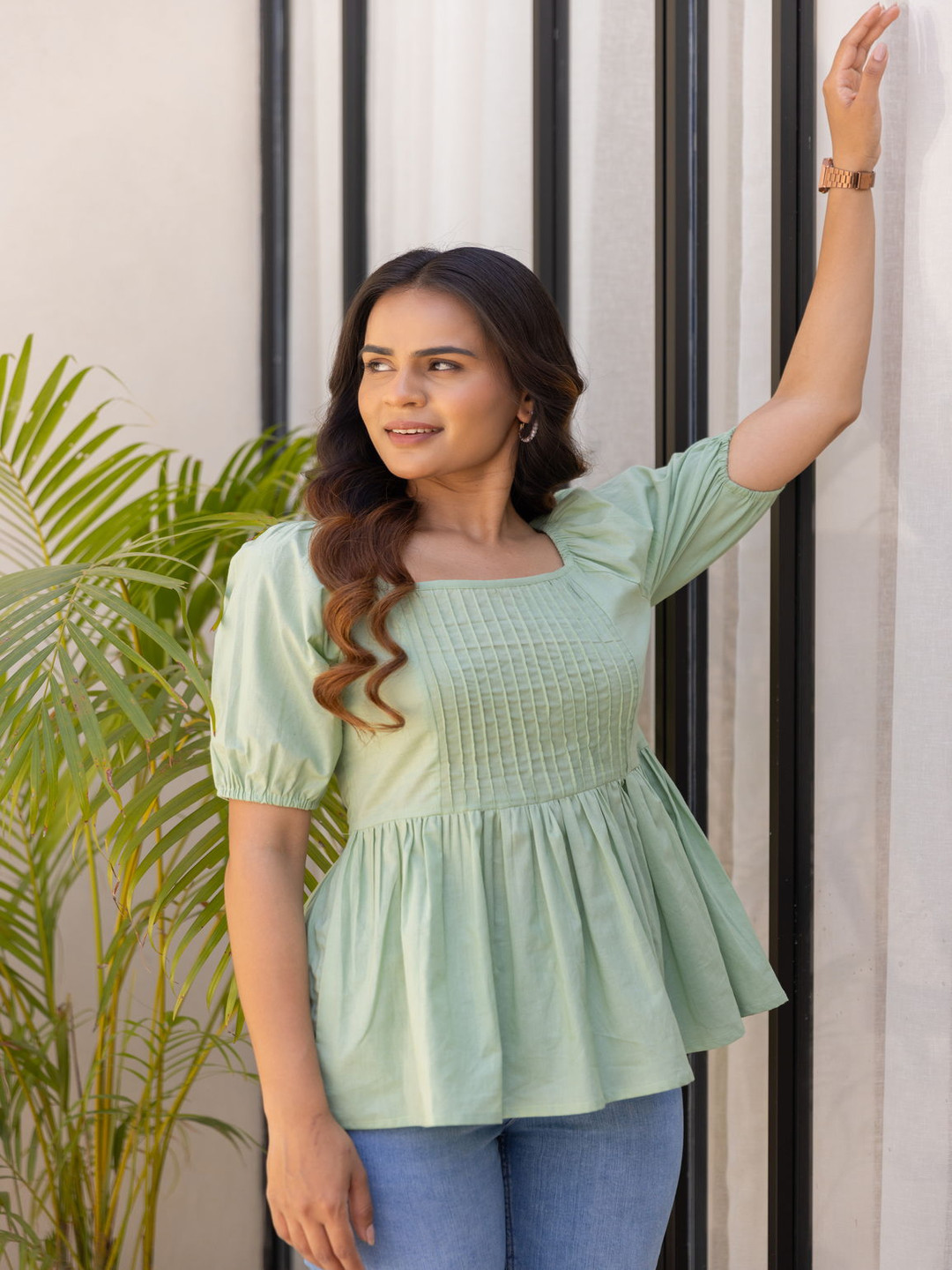 Made from soft cotton, this striped peplum top offers a flattering fit with a touch of playful style.